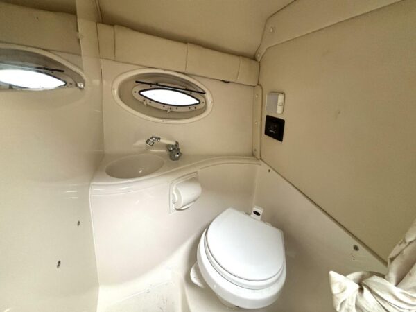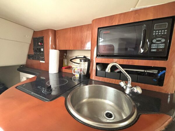 Inside, the forward V-berth, convertible dinette, full galley, and private head with shower ensure weekend cruising comfort.