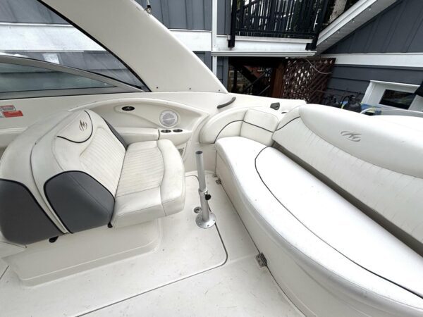 With twin MerCruiser 350 MAG MPI engines and an extended swim platform, this boat delivers thrilling speed and smooth handling. The refreshed cockpit, a great sound system, and spacious seating layout make it perfect for both entertaining and relaxation.