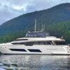 Exclusivity rules the waves. Spirited and seductive, the Ferretti Yachts 850 wins your heart at the very first glance with her angular flair and striking lines that radiate majesty and style. The two built-in windows with integrated portholes have a real streamlined verve, and their grand dimensions leave the interior awash with natural light and magnificent views.